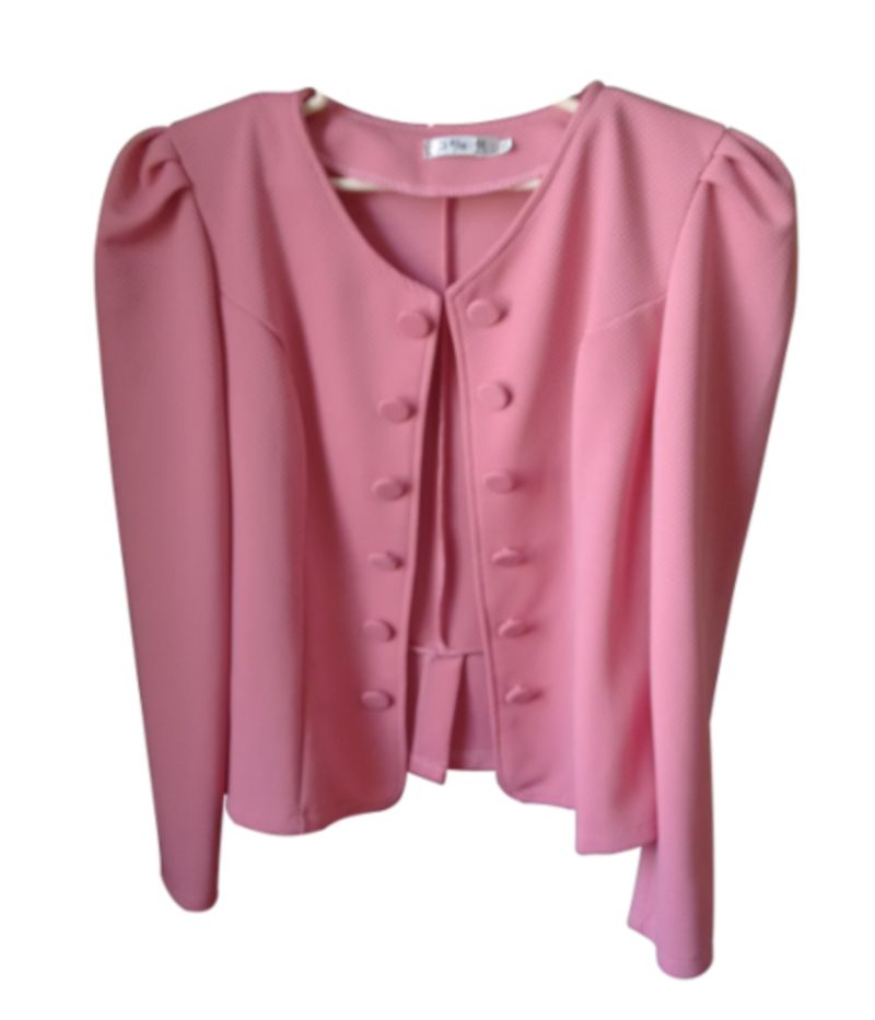 • Blazer abierto rosa, talle corto.